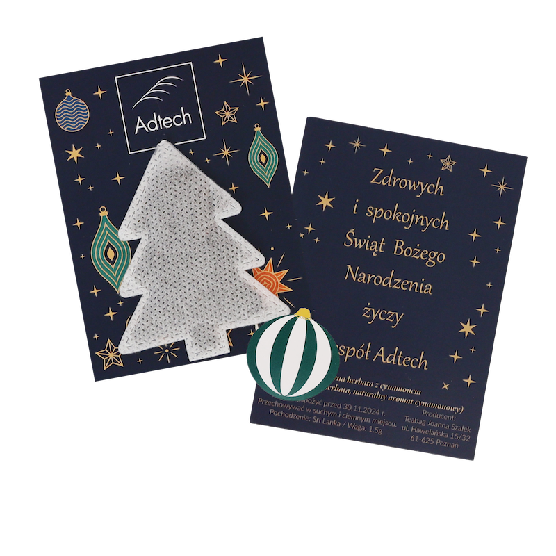 Christmas tree–shaped tea bag is a unique product created especially for the Christmas season. Its festive shape immediately attracts attention and makes it a perfect promotional gift for holiday campaigns, corporate events, and seasonal marketing activities. It is an elegant branded gift that helps create a warm Christmas atmosphere and strengthens positive brand associations.
