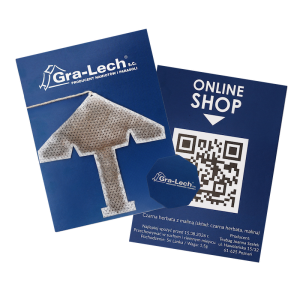 • Dwustronna etykieta w pełni personalizowana (logo, grafika, hasło reklamowe)
